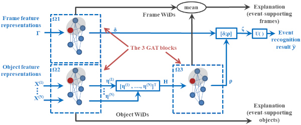 ObjectGraphs: Video Events Recognition and Explanation. This is an implementation of ObjectGraphs, our novel bottom-up video event recognition and explanation approach. It combines object detection, a graph convolutional network (GCN) and a long short-term memory (LSTM) network for performing video event recognition as well as for identifying the objects that contributed the most to the event recognition decisions, thus providing explanations for the latter.