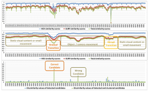 Real-time video shot and scene segmentation. Software for the automatic temporal segmentation of videos into shots and scenes. The released software can detect both abrupt and gradual shot transitions with high accuracy, by jointly examining global and local image descriptors, and then also group the shots into scenes. The whole video analysis process is more than seven times faster than real-time-processing on an i7 PC, for the CPU version of the software. A GPU version is also available.