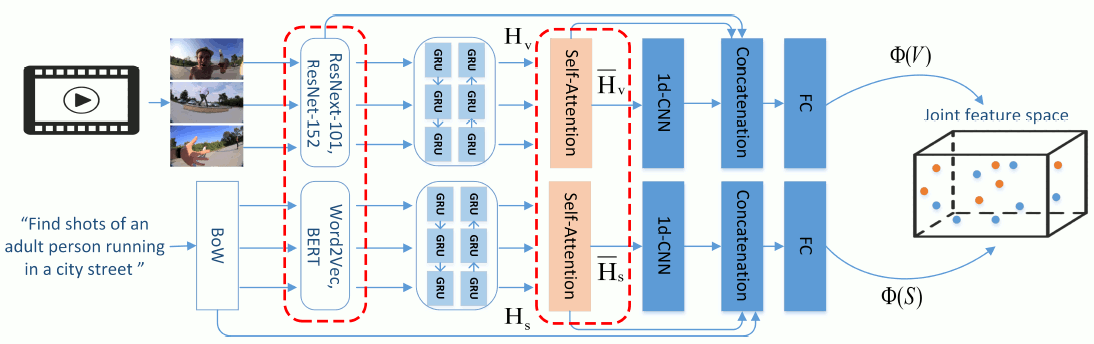 Dual Encoding Attention Network for ad-hoc Video Search. We provide an implementation of our extended dual encoding network for ad-hoc video search, presented at ACM ICMR 2020. This network makes use of more than one encodings of the visual and textual content, as well as two different attention mechanisms.