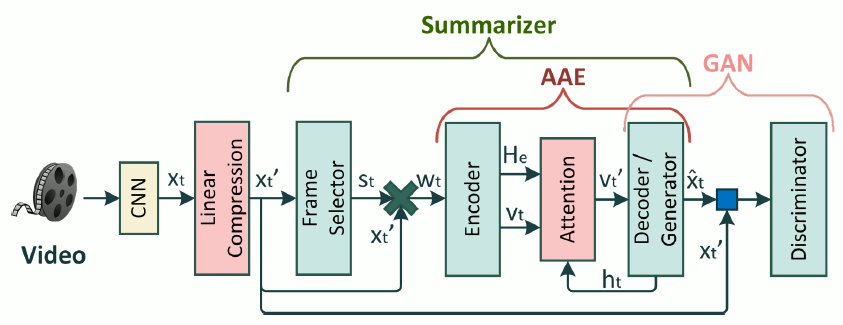 AC-SUM-GAN for Unsupervised Video Summarization. This is an implementation of our latest video summarization method, presented in our paper "AC-SUM-GAN: Connecting Actor-Critic and Generative Adversarial Networks for Unsupervised Video Summarization", IEEE Trans. on Circuits and Systems for Video Technology (IEEE TCSVT), vol. 31, no. 8, pp. 3278-3292, Aug. 2021. This is, to date, our most complete and best-performing method for video summarization.