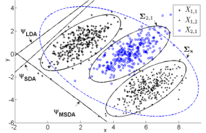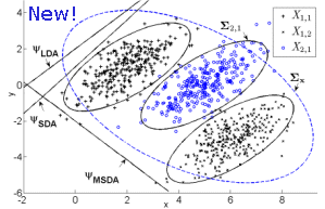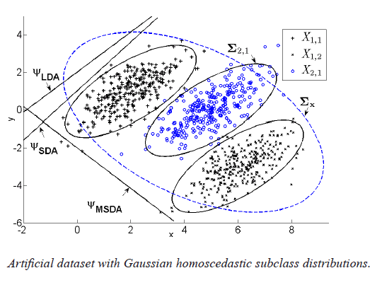 Mixture Subclass Discriminant Analysis (MSDA) & Generalized Subclass Discriminant Analysis / Kernel Mixture Subclass Discriminant Analysis (GSDA/KMSDA) software. MSDA is a dimensionality reduction method that alleviates two shortcomings of Subclass Discriminant Analysis (SDA). In short, MSDA modifies the objective function of SDA, and utilizes a partitioning procedure to help with the discrimination of data with Gaussian homoscedastic subclass structure. KMSDA is the kernel-extension of MSDA; GSDA is a speeded-up version of KMSDA. We provide, for non-commercial use, an MSDA and a GSDA/KMSDA implementation in Matlab code.