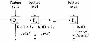 Cascades and other classifier combinations. In image/video annotation problems, we usually have lots of features that we could use, and combining features based on deep convolutional neural networks with other visual descriptors can significantly boost performace. We develop algorithms for efficiently combining multiple features and detectors, such as a subclass recoding error-correcting outputs (SRECOC) method for learning and combining subclass detectors, and a cascade-based algorithm that dynamically selects, orders and combines many base classifiers that are trained independently using different features. [icme13] [icip15a] [mmm16b]